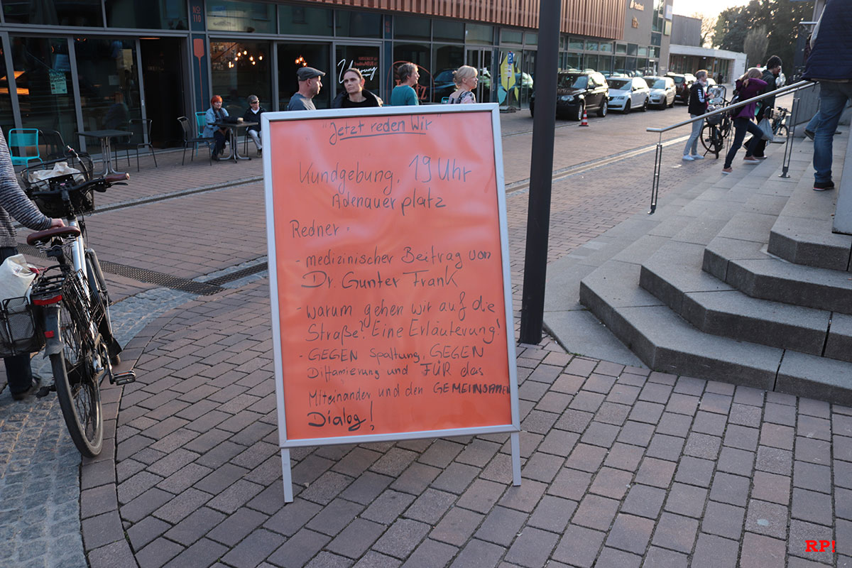 Pressefotograf Helmut Pfeifer ließ seine Fotokamera zu Hause und war einzig in seiner Funktion als Stadtrat anwesend und beobachtete die Kundgebung. Stadtrat Jochen Filsinger war auch anwesend. Weitere Stadträte waren nicht zu sehen. Auch Bürgermeister Sauer war nicht vertreten. Elkemann war schon früher als angekündigt zur Kundgebung erschienen und hörte sich die Worte des Mediziners ebenso an wie die weiteren Redebeiträge seiner Bürger. Dass Elkemann alleine kam, war dem Dialog zuträglich. Wären zwei größere Gruppen aufeinandergetroffen, wäre dies für beide wenig zielführend gewesen denn es hätte zur Eskalation führen können. Denn wie Elkemann in seiner Rede richtigerweise auch sagte, „auf beiden Seiten ist Emotionalität im Spiel“.