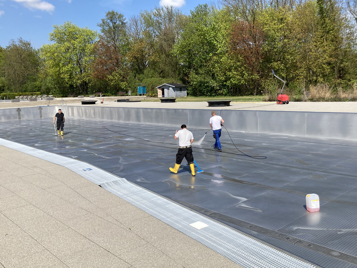 In den vergangenen Wochen stand vor allem die gründliche Reinigung der Becken im Mittelpunkt. Schmutz und Ablagerungen aus dem Winter wurden entfernt, Flächen geschrubbt und desinfiziert. Parallel dazu werden dann die technischen Anlagen überprüft: Pumpen, Filter und Wasseraufbereitungssysteme müssen einwandfrei funktionieren, um eine hohe Wasserqualität zu gewährleisten.