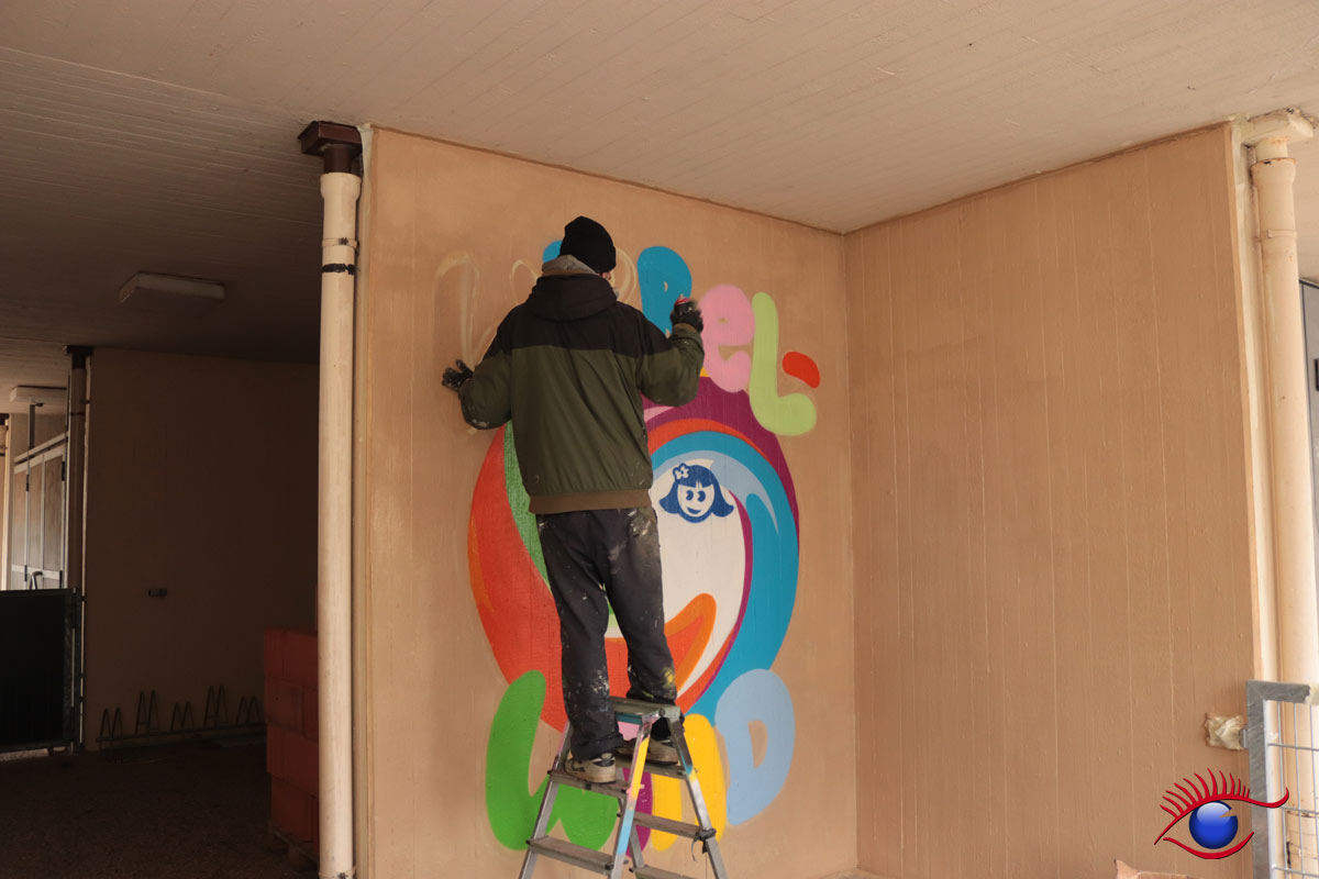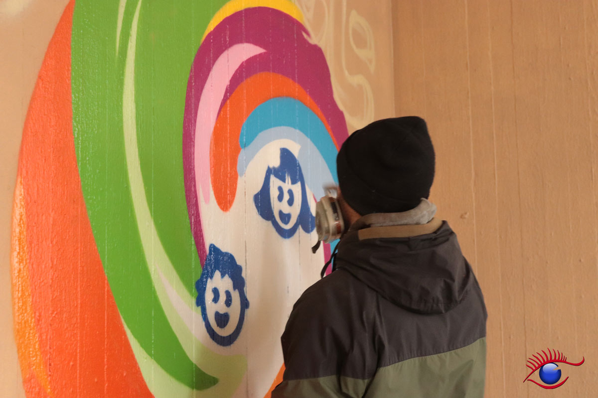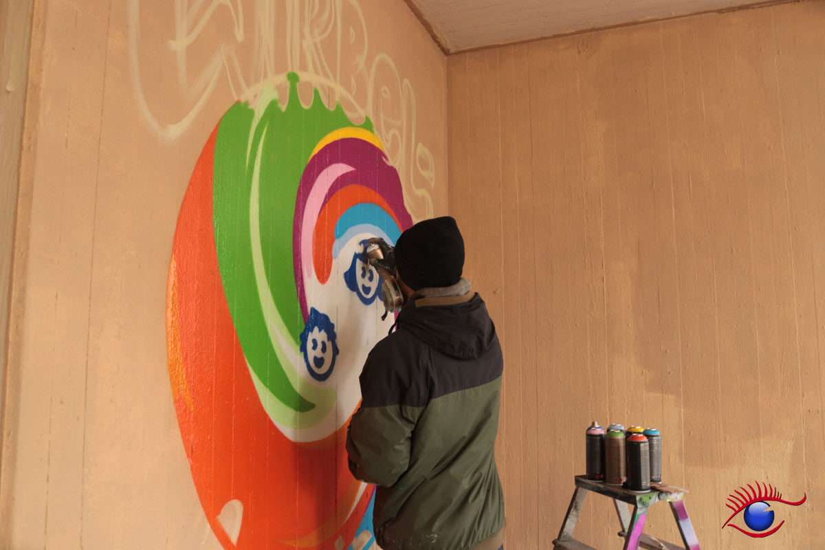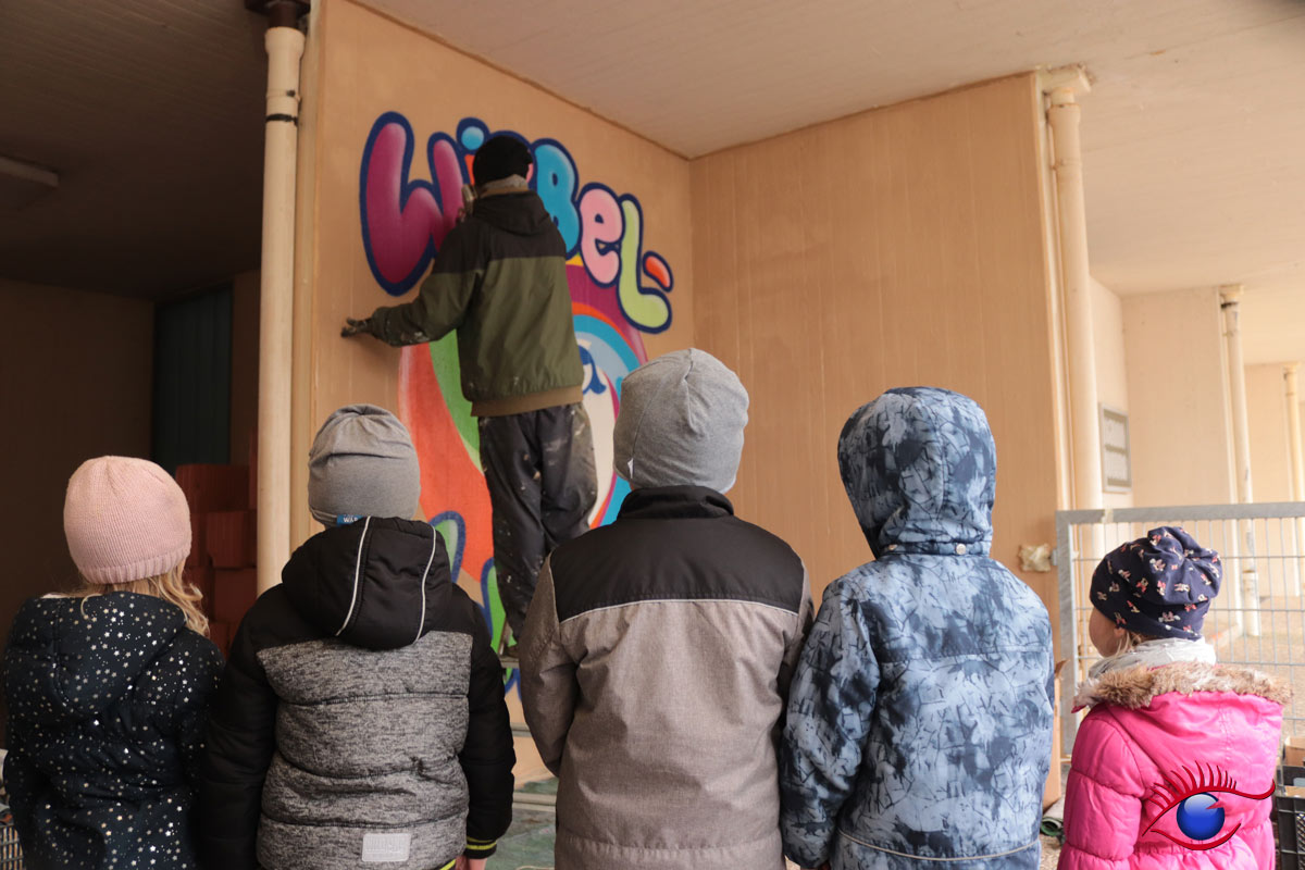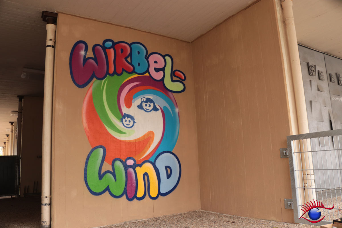 „Am 12. und 14.März war es endlich soweit, Marco Billmaier rückte mit seinen vielen Spraydosen im Kindergarten Wirbelwind an. Finanziert über „Projekte Rainer Kircher“ konnte endlich die Außenwand inkl. der angrenzende Trafostation sowie ein Teil der Kirchenwand in ein schönes Licht gerückt werden, denn oft wird der Kindergarten von außen gar nicht als solcher erkannt.“ berichtet Kindergartenleiterin Esther Philipp.