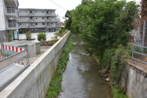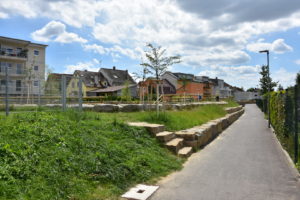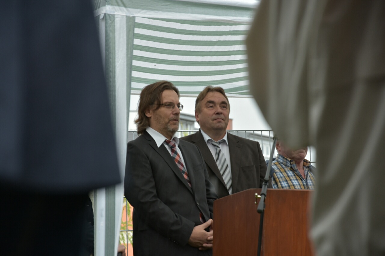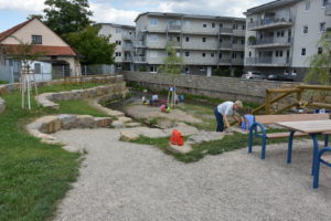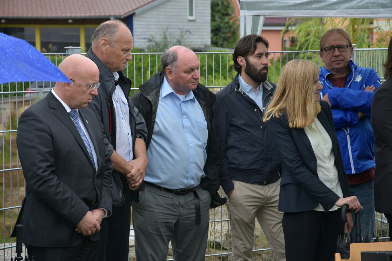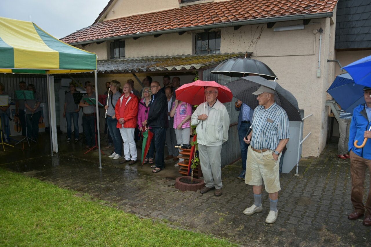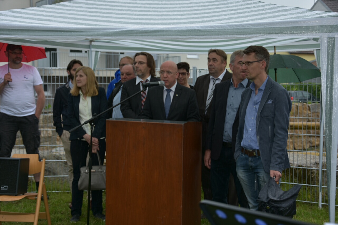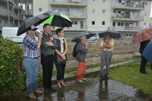 Pünktlich zur Eröffnung des neuen Leimbachabschnittes kam der Platzregen. Die Veranstalter hatten sich darauf eingestellt und sich vorsorglich auf die Freifläche der Stadtkapelle und deren Räumlichkeiten zurückgezogen. Bürgermeister Ludwig Sauer konnte in Vertretung von Oberbürgermeister Dirk Elkemann zahlreiche Ehrengäste aus dem Bundestag, dem Landtag, sowie Vertreter des Regierungspräsidiums und des Landkreises begrüßen. Auch wenn die Veranstaltung durch Wetterkapriolen ein bisschen beeinträchtigt sei, so habe man mit dem hochwassersicheren und ökologischen Ausbau des Leimbachabschnittes eine ehebliche städtebauliche Verbesserung für Wiesloch erreichten können. An erster Stelle stehe natürlich der Schutz vor Hochwasserereignissen . Durch den Bachausbau habe man Sicherheit für die Anlieger schaffen können. Das erste große Hochwasser von Ende Mai diesen Jahres habe das neue Gewässer mit Bravour gemeistert. So sei die Bebauung des ehemaligen Postgeländes mit 49 Wohnungen durch den Gewässerausbau erst genehmigungsfähig geworden. Auf den Gewässerunterhaltungsweg sei eine attraktive Rad- und Fußwegverbindung entstanden, die zum Flanieren einlade und vor allem für Kinder und ältere Menschen eine sichere Verbindung zur Innenstadt, bzw. in Richtung Wieslocher Westen darstelle. Der Bach sei wieder erlebbar geworden und es gebe einen Gewässerzugang, der zum Verweilen und Spielen einlade. Der Rad- und Fußweg sei Teil der im vergangenen Jahr eröffneten Leimbachroute. Darüber hinaus wäre der ehemalige Engpass im Bereich der alten Brücke beseitigt worden und die Gewichtsbegrenzung sei aufgehoben worden. Der Kindergarten West habe ein neues Außengelände erhalten und die Kleingartenbesitzer neue Gartenzäune und Türen.