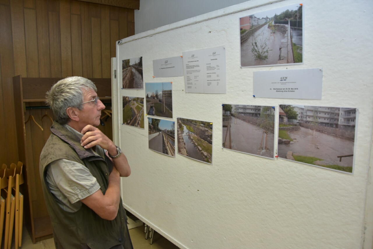 Dr. Markus Schuster vom Wasserrechtsamt des Rhein-Neckar-Kreises brachte die Grüße des Landrats mit und erläuterte die drei Säulen des Hochwasserschutzes. Zunächst gebe es den Rückhalt in der Fläche mit der Reaktivierung und dem Schutz natürliche Retentionsflächen. Daneben sorge der Technische Hochwasserschutz mit dem Bau von Rückhaltebecken und dem Gewässerausbau dafür, dass vorhandene Bebauung und Infrastruktur geschützt werde. Die Hochwasservorsorge schließlich mit dem Schutz von Gebäuden, Einrichtungen und Anlagen gehe jeden betroffenen Bürger an.