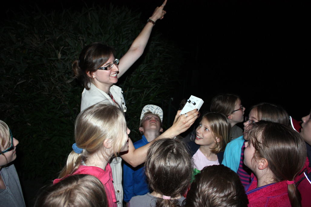 In der Dämmerung lernen die Kinder an verschiedenen Stationen ihre eigenen Sinne kennen, bevor es in einem Rundgang um die Sinne der Tiere geht. Bewaffnet mit Nachtsichtgerät und Fledermaus-Detektor gibt es auf dieser Exkursion Spannendes zu entdecken.